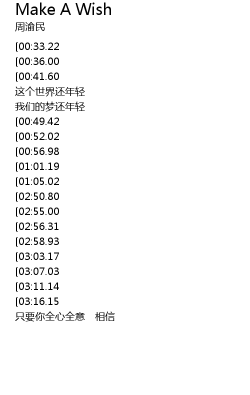 | [03:47.67][03:07.03][01:29.40] | 让我们 Make a wish make a wish |