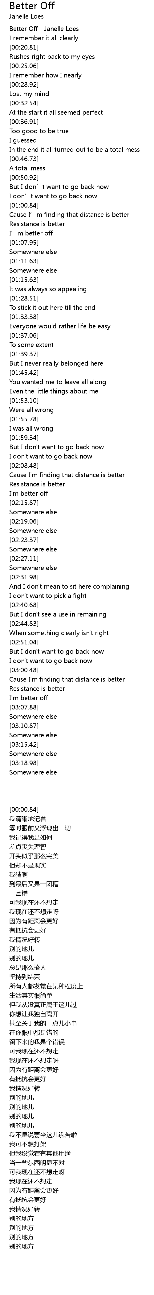 | [00:00.84] | Better Off Janelle Loes |
