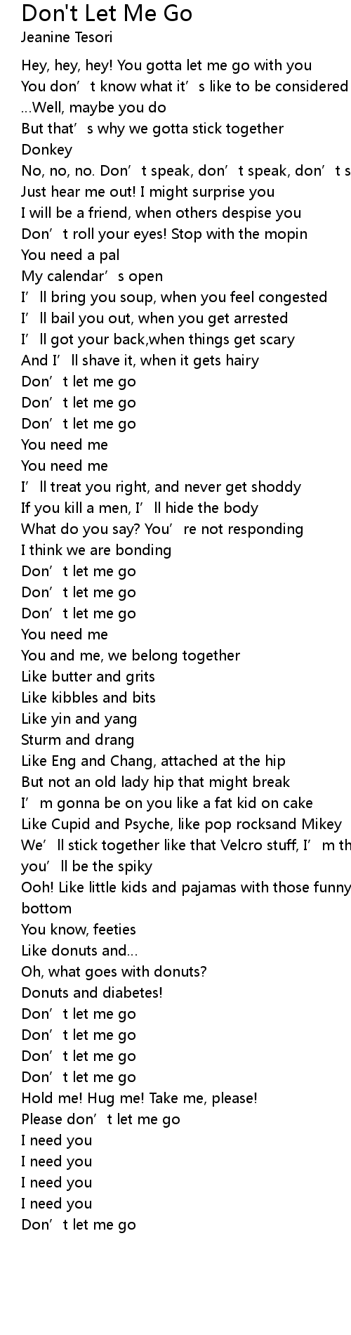 | [00:49.881] | Don' t let me go |