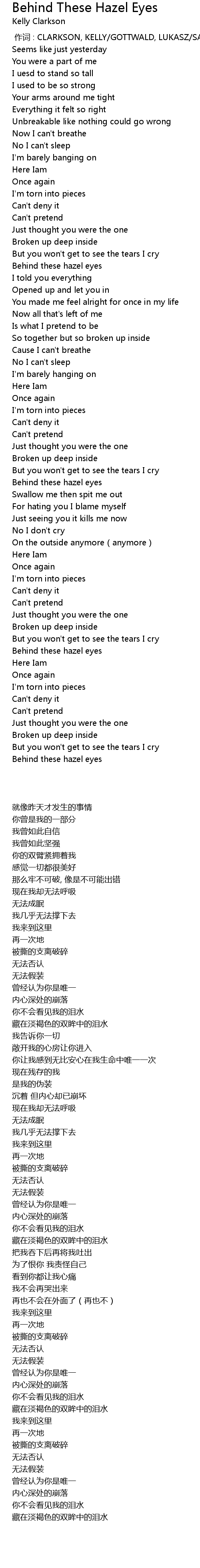 | 歌曲 | Behind These Hazel Eyes |