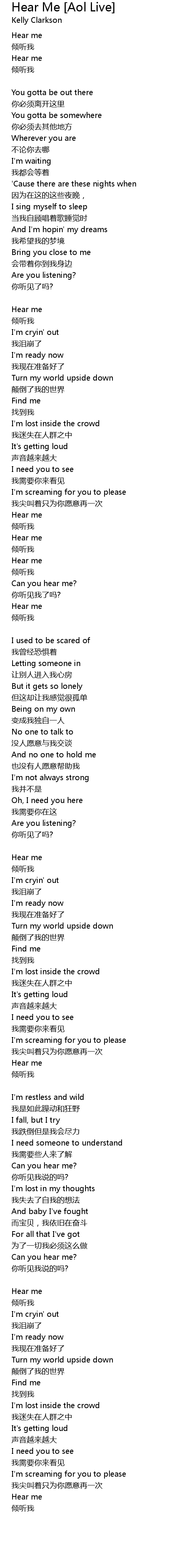 | 歌曲 | Hear Me [Aol Live] |