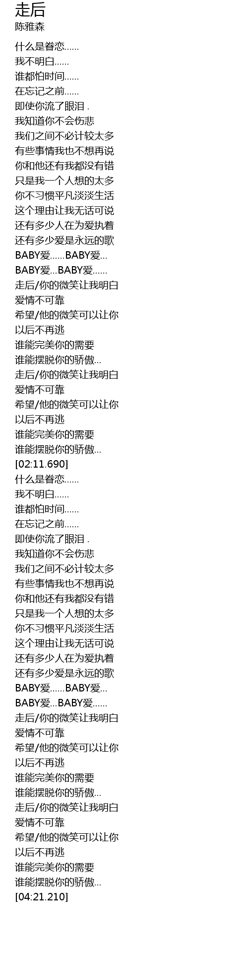 | [03:37.150] | 走后/你的微笑让我明白 |