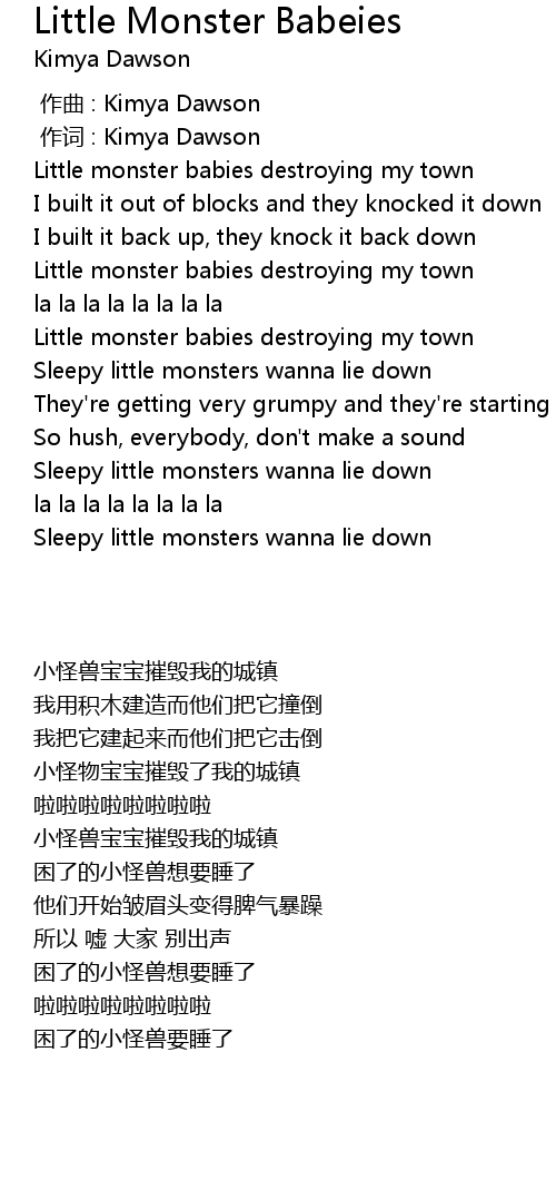 | [00:25.36] | 小怪物宝宝摧毁了我的城镇 |
