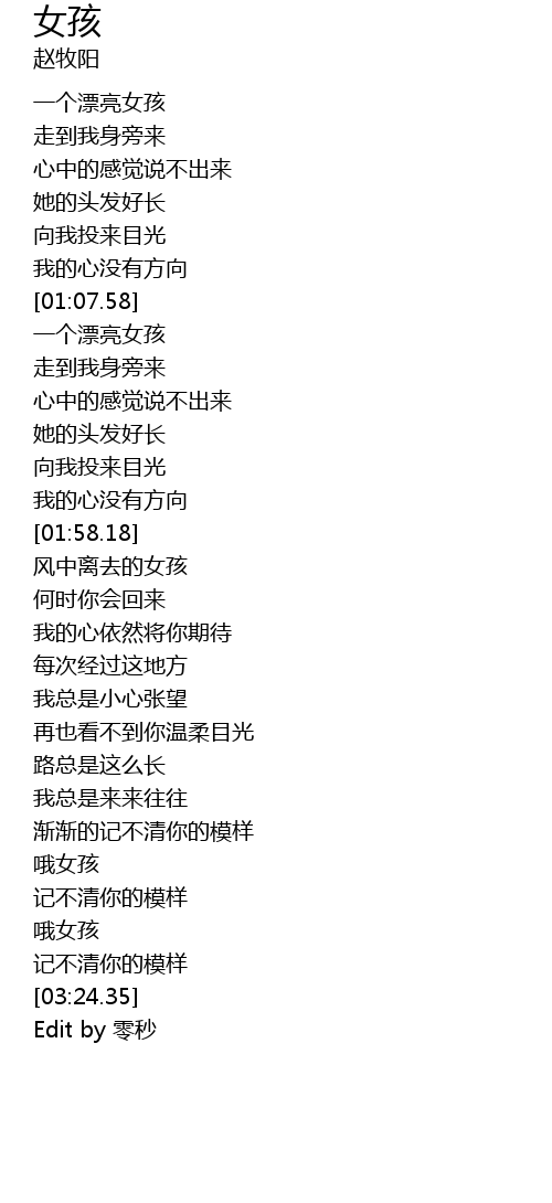 | [00:34.87] | yí gè piào liàng nǚ hái |