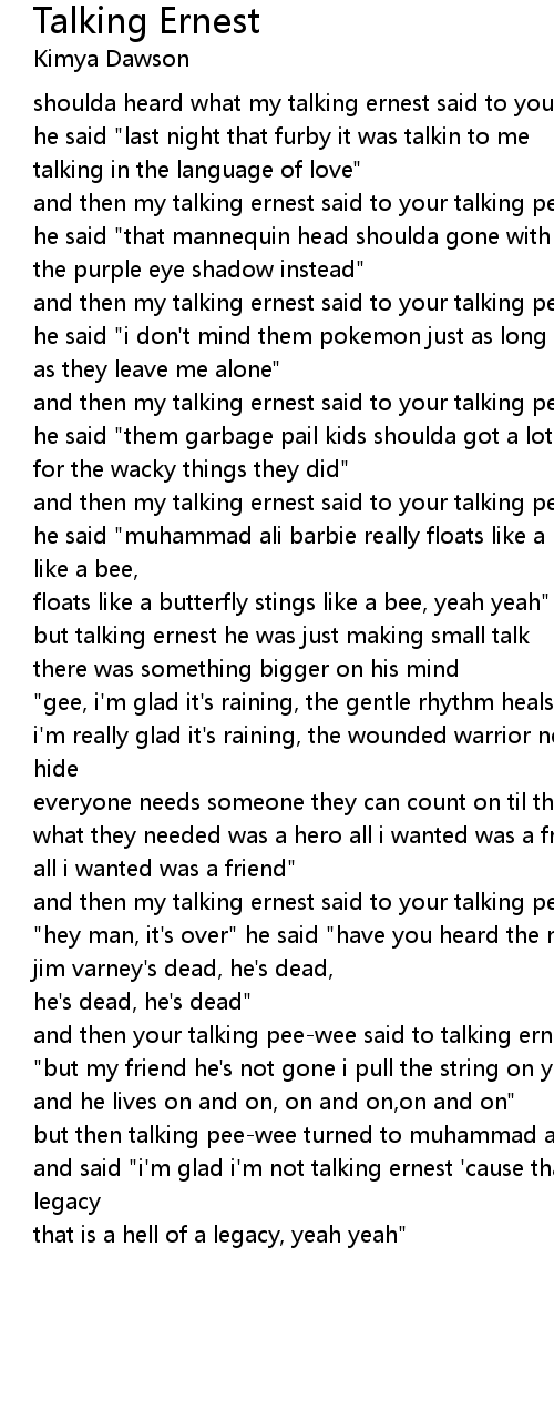 shoulda heard what my talking ernest said to your talking pee-wee |