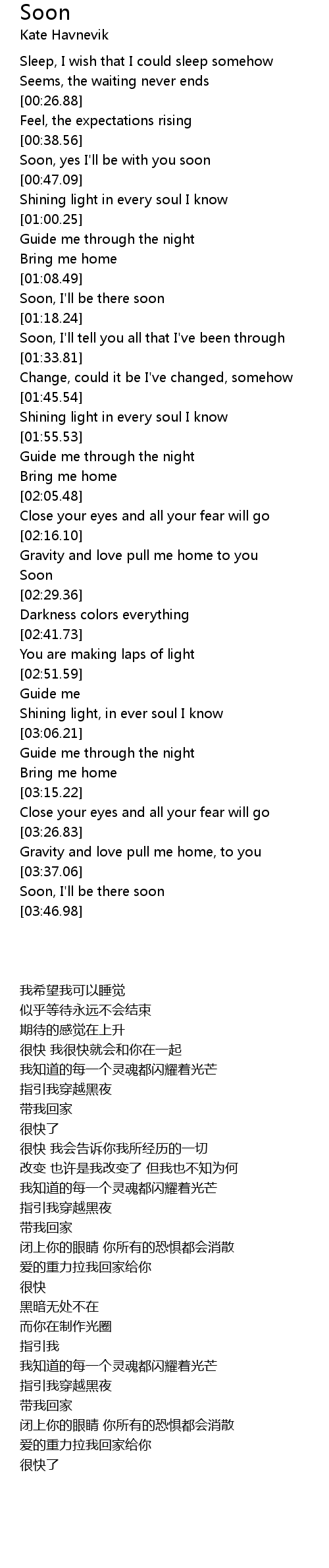 Soon, yes I'll be with you soon |