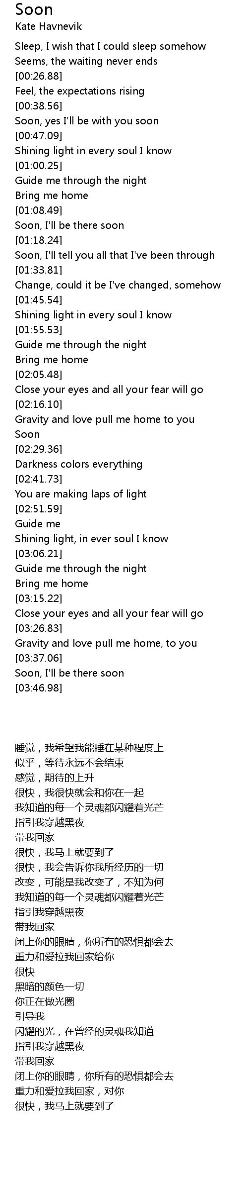 Soon, yes I'll be with you soon |