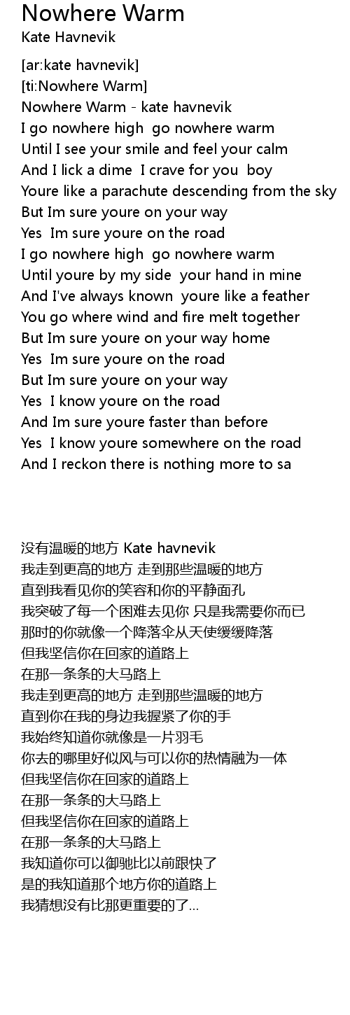 [ti:Nowhere Warm] |