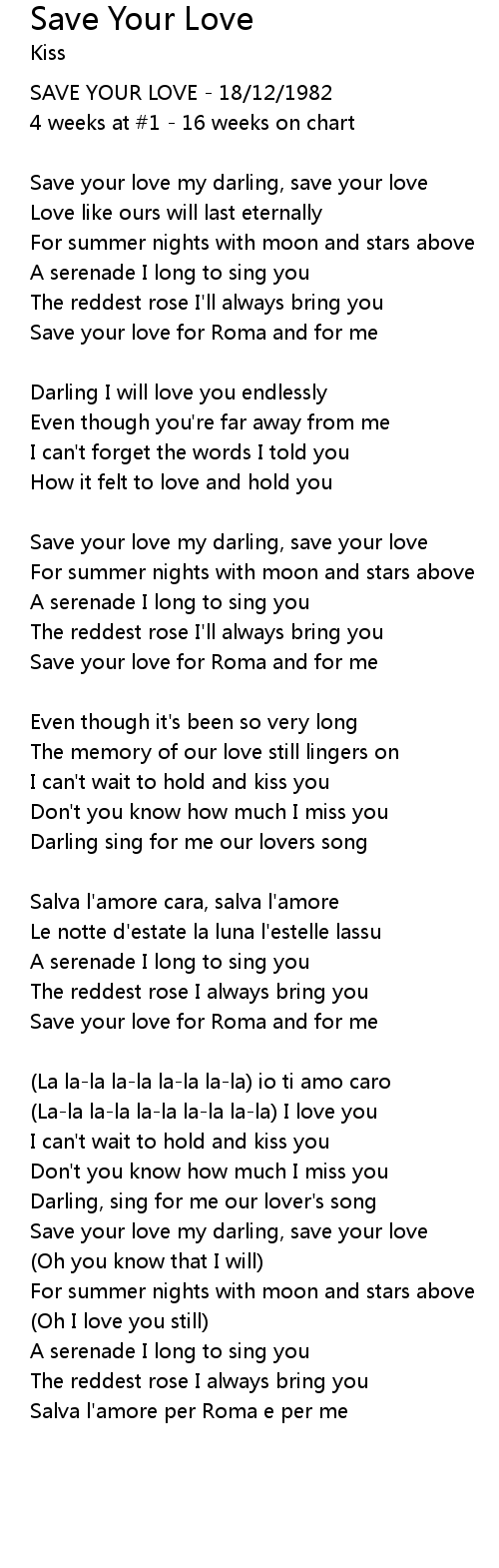 | Save your love my darling, save your love | |