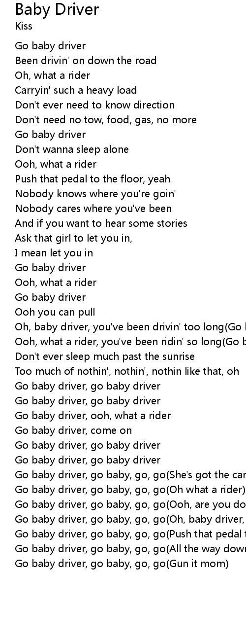 | Go baby driver, go baby, go, go(Oh, baby driver, ooh yeah) | |