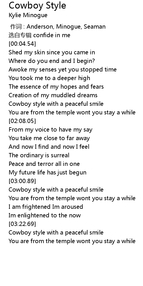 | [00:00.00] | 作词 : Anderson, Minogue, Seaman |