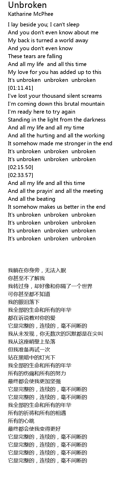 It's unbroken unbroken unbroken |