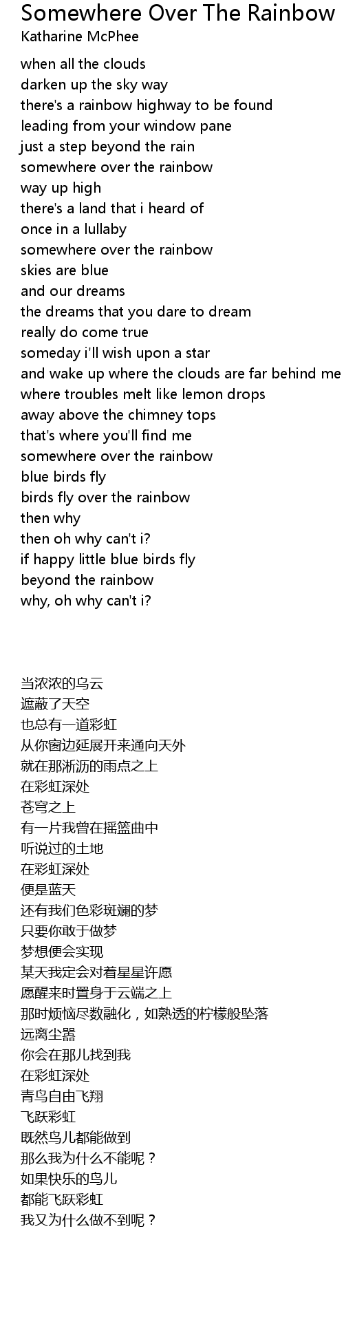 somewhere over the rainbow |