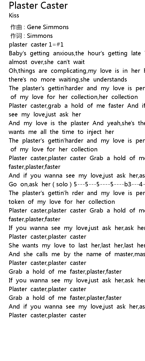 | [01:41.60] | Plaster caster,plaster caster Grab a hold of me faster,plaster,faster |