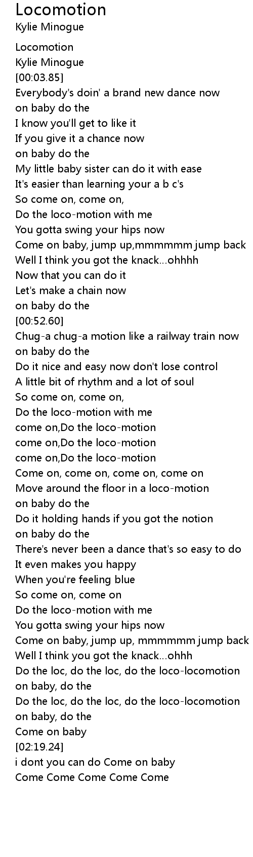 | [02:10.19] | Do the loc, do the loc, do the locolocomotion |