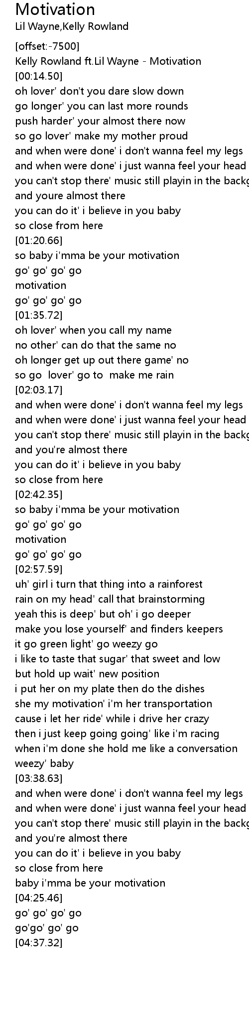| [00:00.00] | Kelly Rowland ft.Lil Wayne - Motivation |