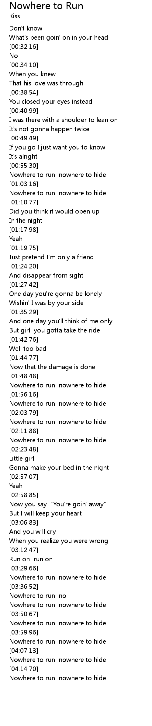 | [03:52.37] | Nowhere to run nowhere to hide |