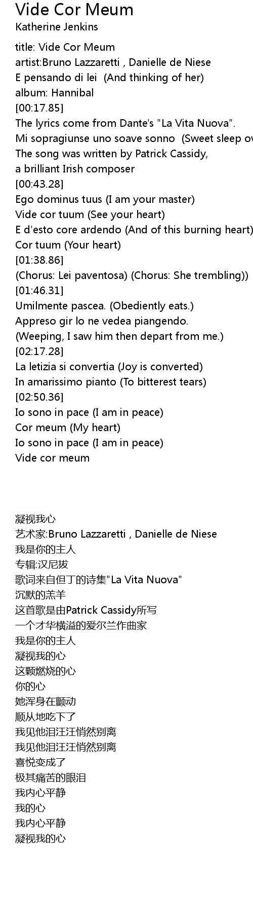 The lyrics come from Dante's "La Vita Nuova". |