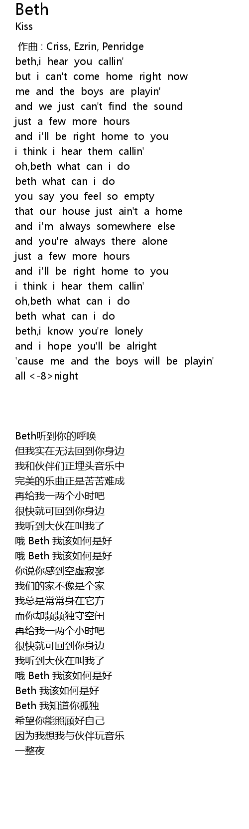| [01:22.56] | 哦 Beth 我该如何是好 |
