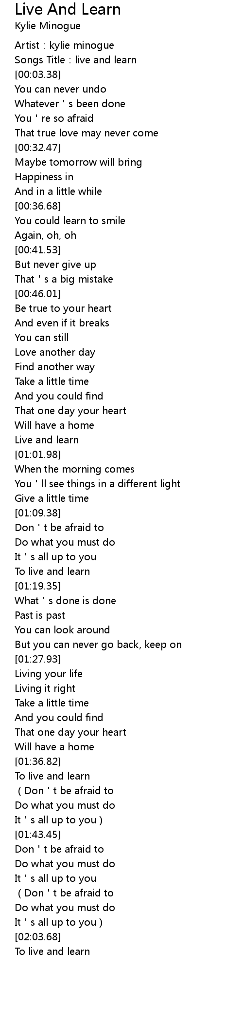 | [00:02.48] | Songs Title: live and learn |
