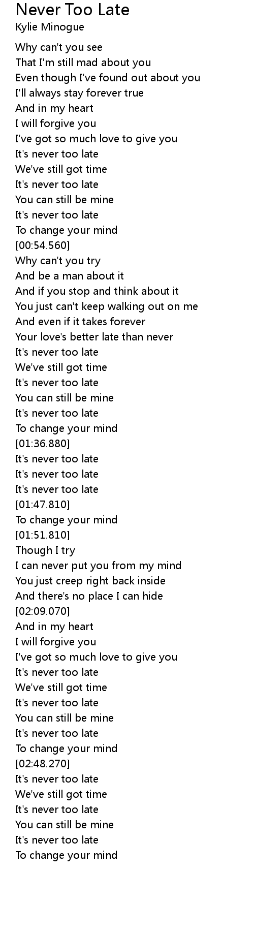 Your love's better late than never |