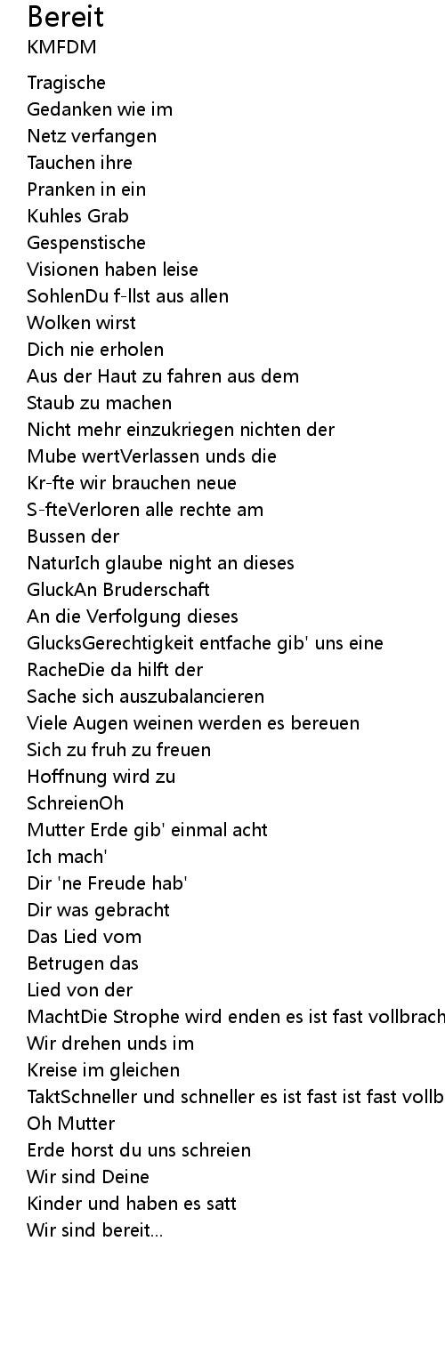 | MachtDie Strophe wird enden es ist fast vollbracht | |