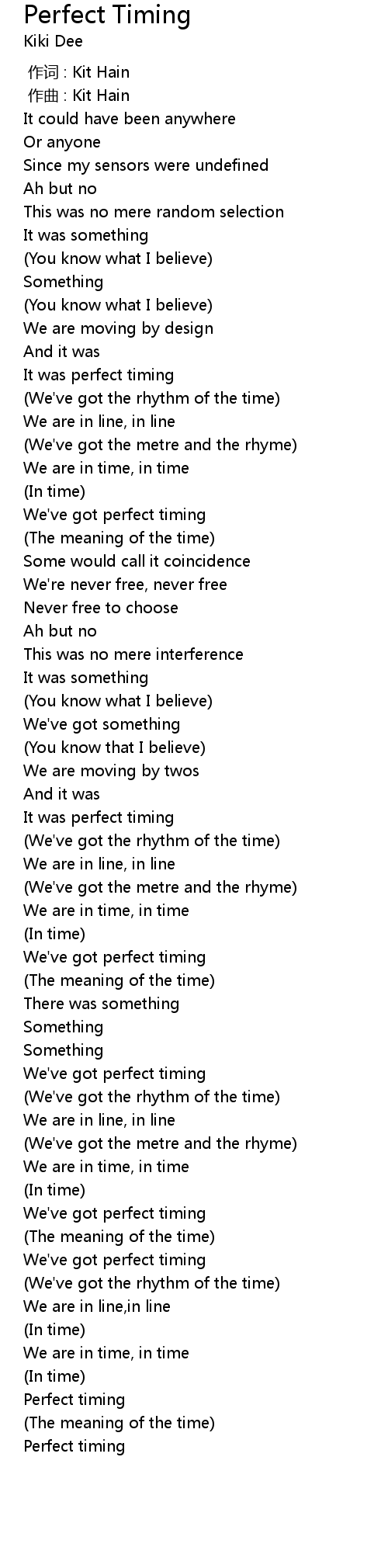 | [00:59.591] | We' ve got perfect timing |