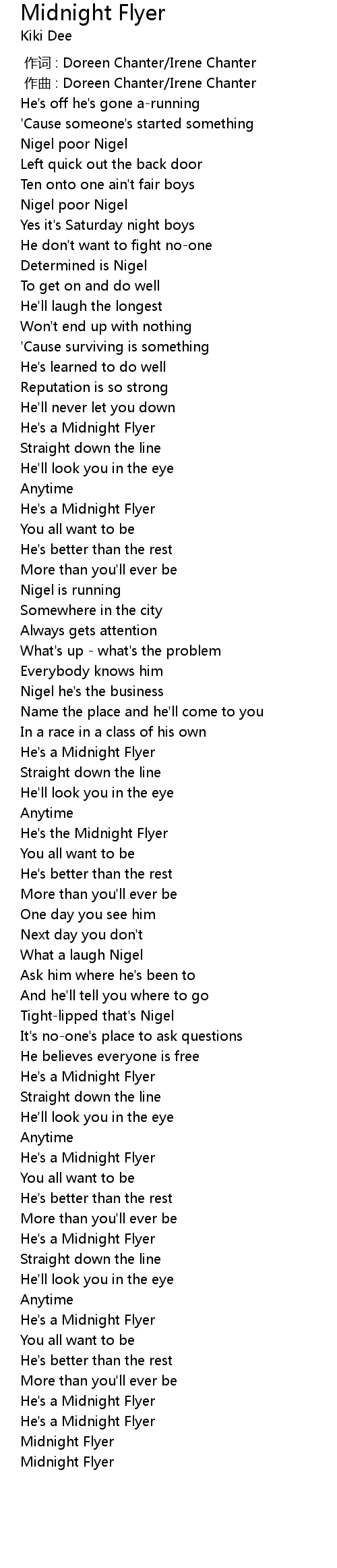 | [00:00.000] | 作词 : Doreen Chanter/Irene Chanter |