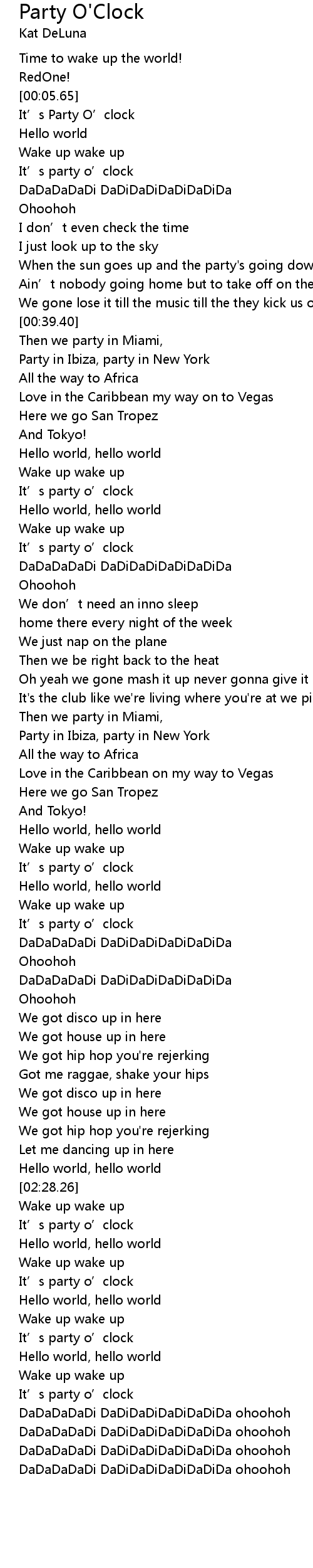 | [00:27.85] | When the sun goes up and the party' s going down |