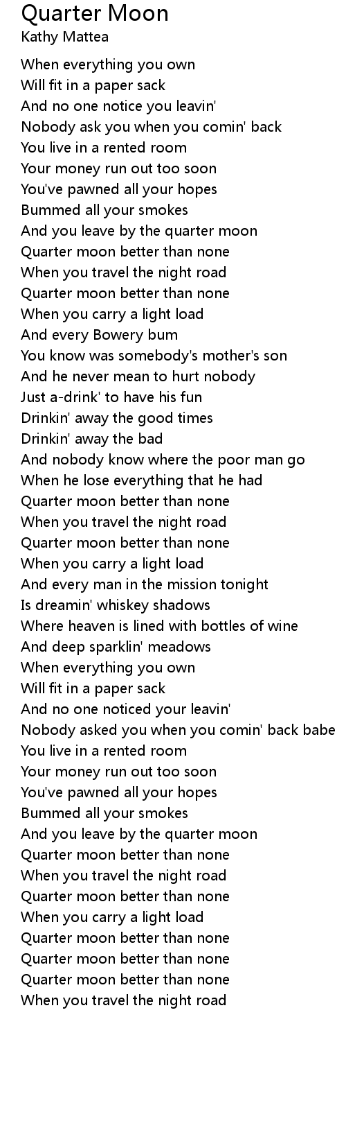 And you leave by the quarter moon |