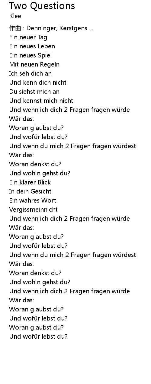 | Und wenn du mich 2 Fragen fragen wü rdest | |