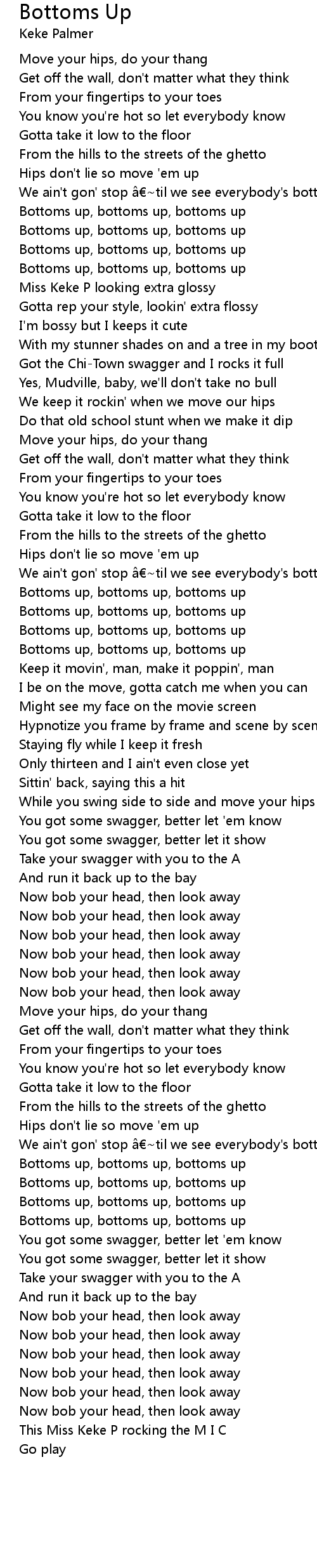 | We ain' t gon' stop til we see everybody' s bottoms up | |