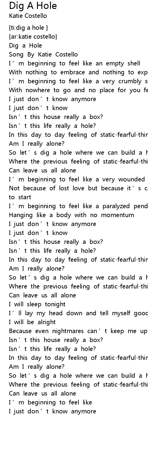 | [00:01.35] | Dig a Hole |