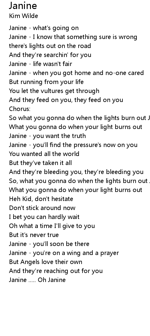 So what you gonna do when the lights burn out Janine |