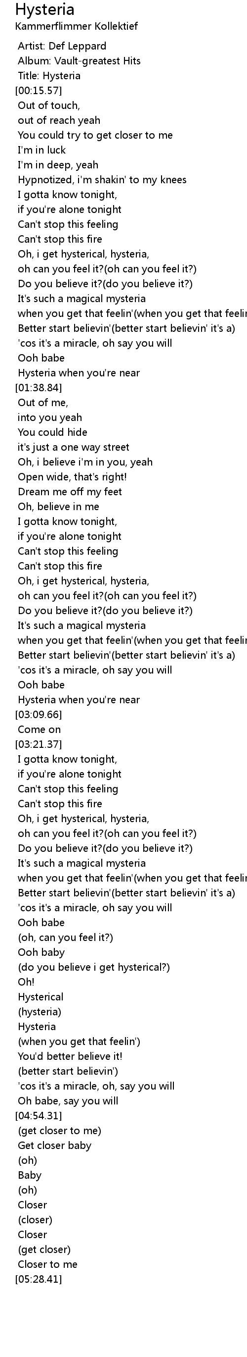 (do you believe i get hysterical?) |