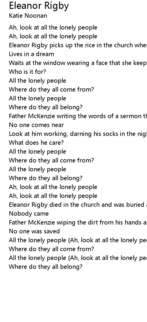 Eleanor Rigby picks up the rice in the church where a wedding has been