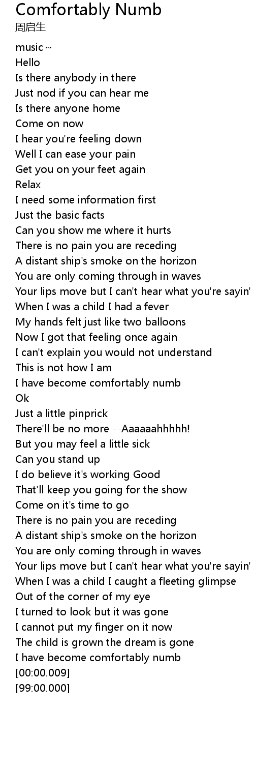 | [01:53.80] | I have become comfortably numb |