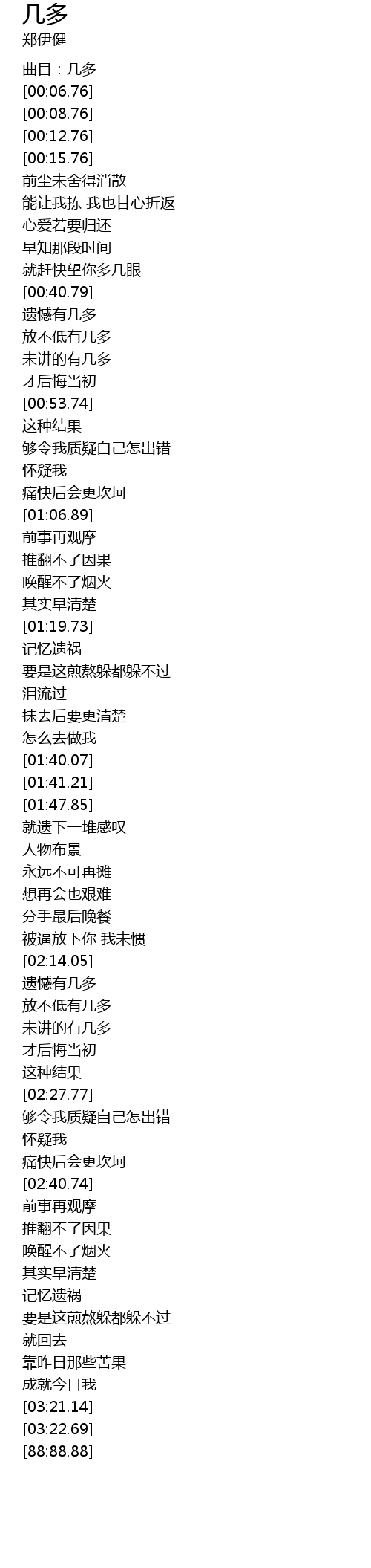 | [00:41.39] | yí hàn yǒu jǐ duō |