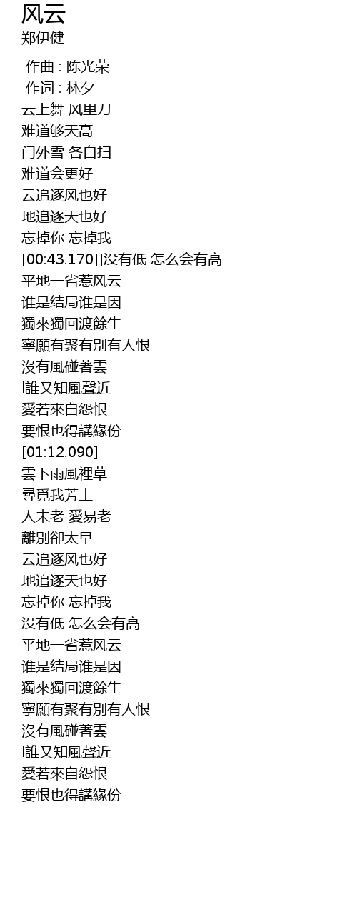 | [01:01.670] | méi yǒu fēng pèng zhe yún |