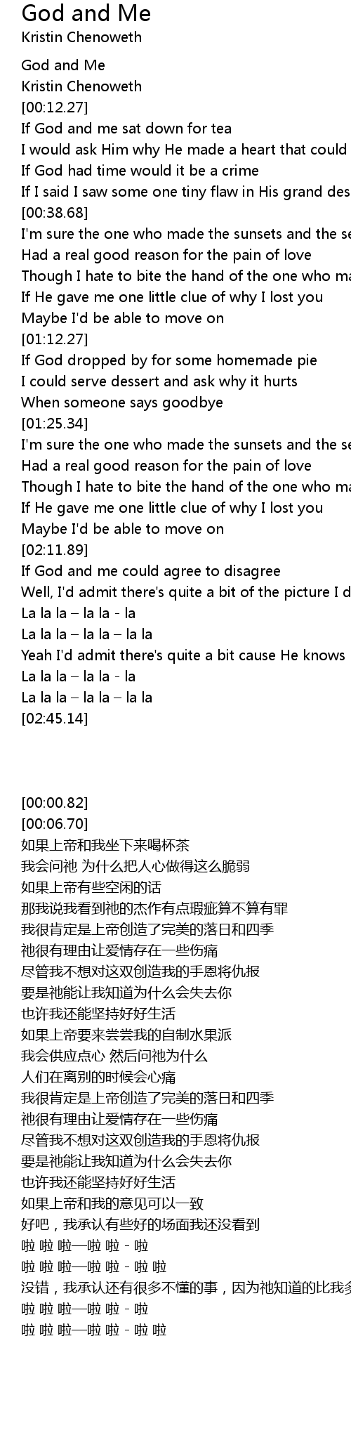 | [00:00.82] | God and Me |