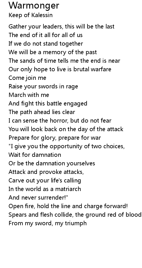 Prepare for glory, prepare for war |