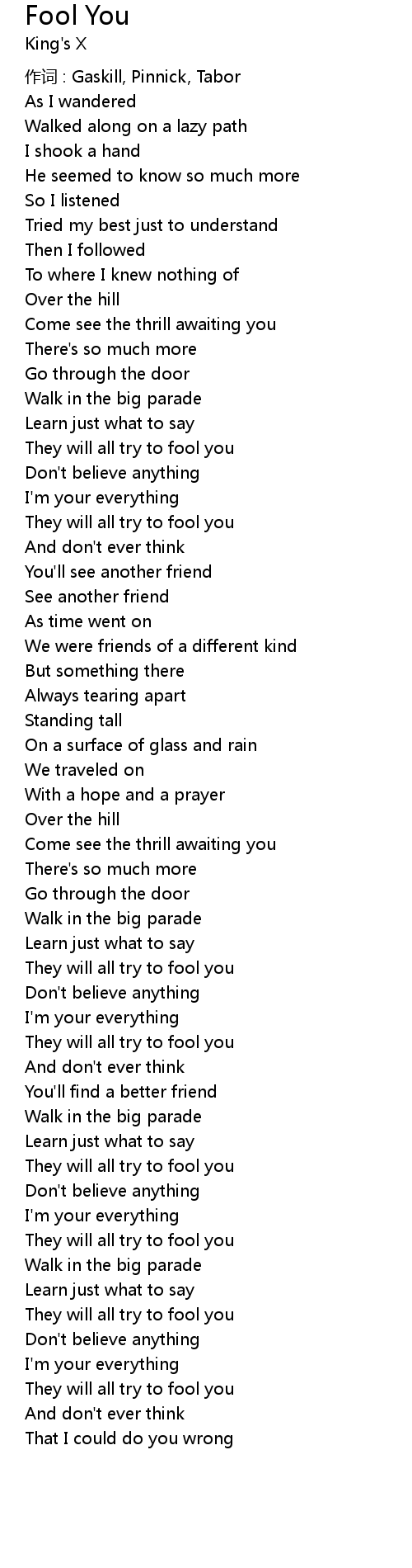 | 作词 : Gaskill, Pinnick, Tabor | |