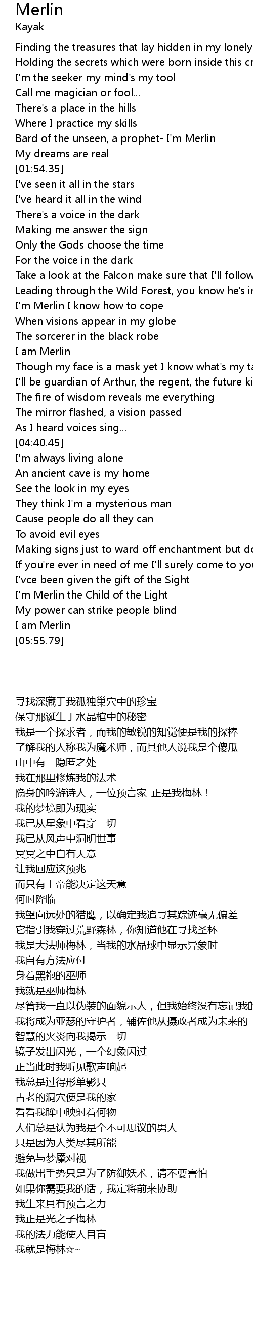 Bard of the unseen, a prophet- I'm Merlin |