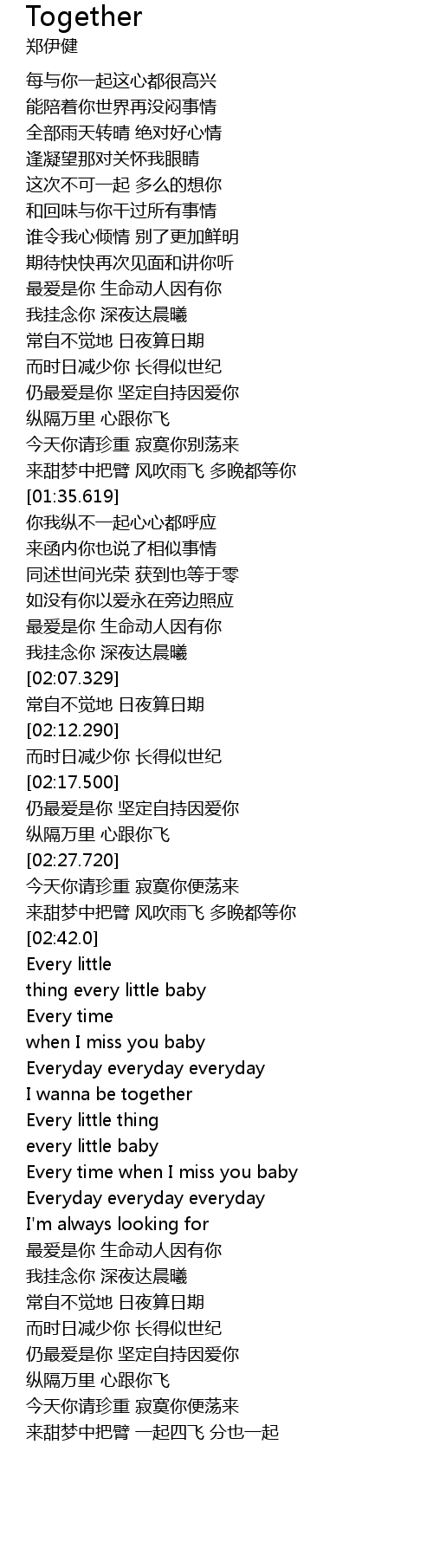 | [02:33.730] | 来甜梦中把臂 风吹雨飞 多晚都等你 |
