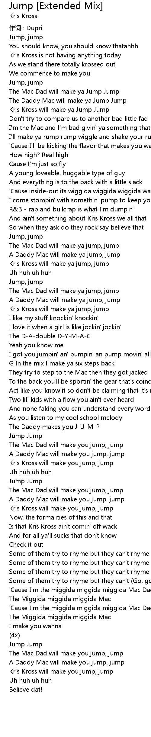 | Kris Kross will make you jump, jump | |