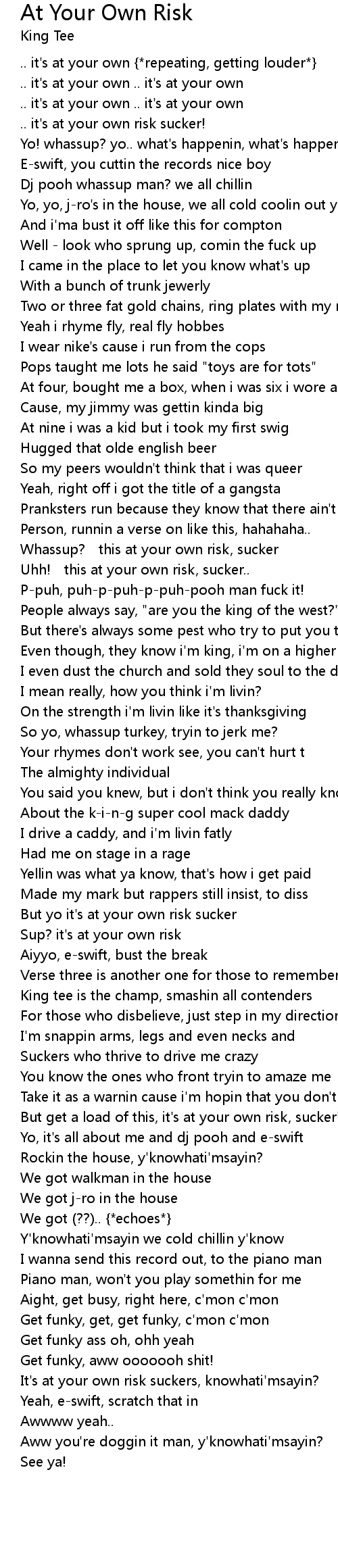| But yo it' s at your own risk sucker | |