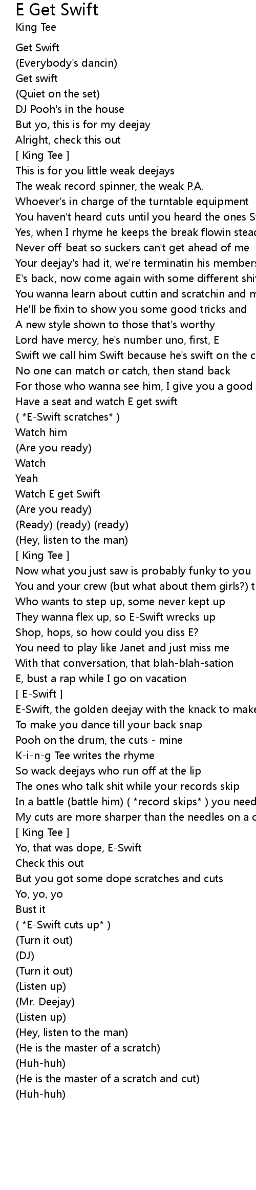 Yo, that was dope, E-Swift |