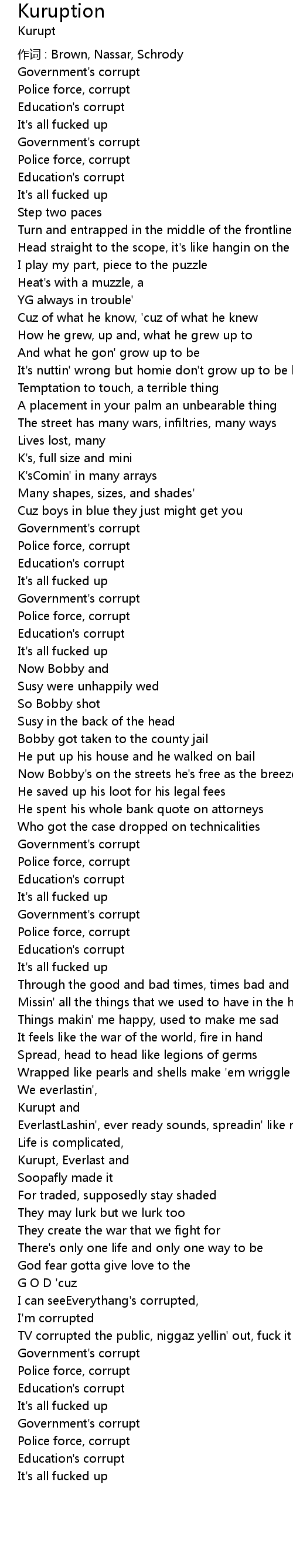 | I can seeEverythang' s corrupted, | |
