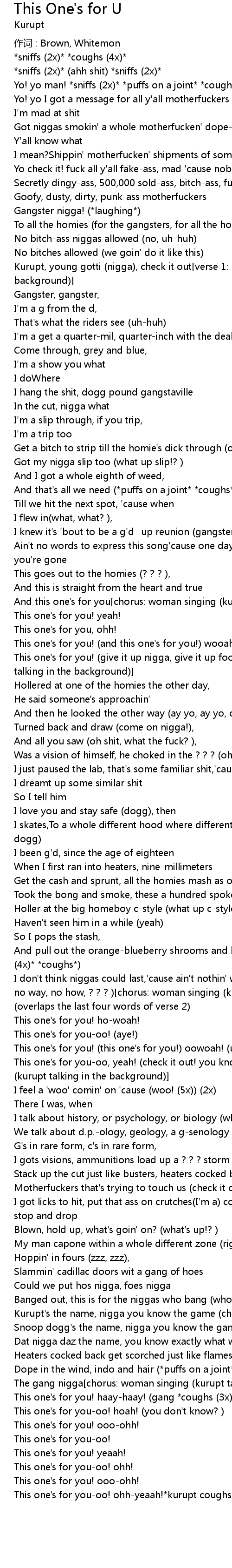 | This one' s for youoo, yeah! check it out! you know what? verse 3 kurupt kurupt talking in the background | |