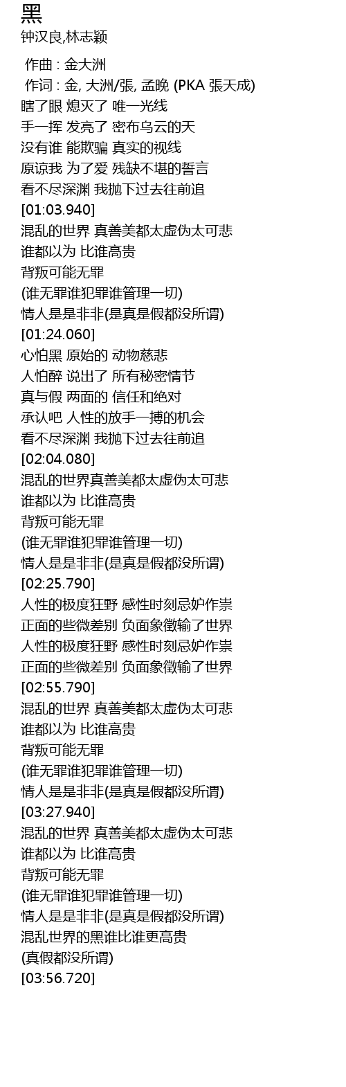 | [03:47.900] | 混乱世界的黑谁比谁更高贵 |